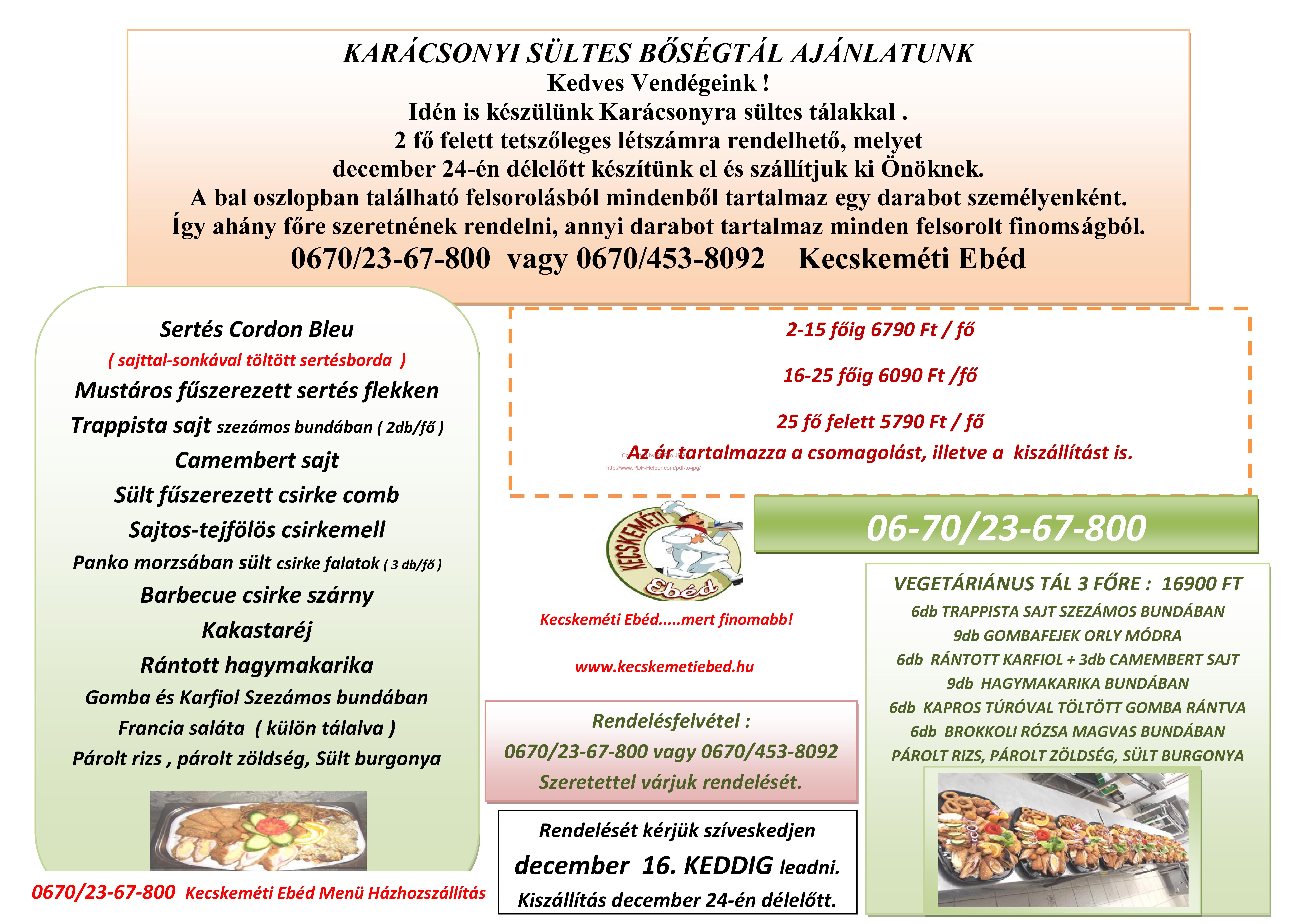 Naponta 3 féle menü és állandó frissensült kínálat házhoz szállítása Kecskeméten